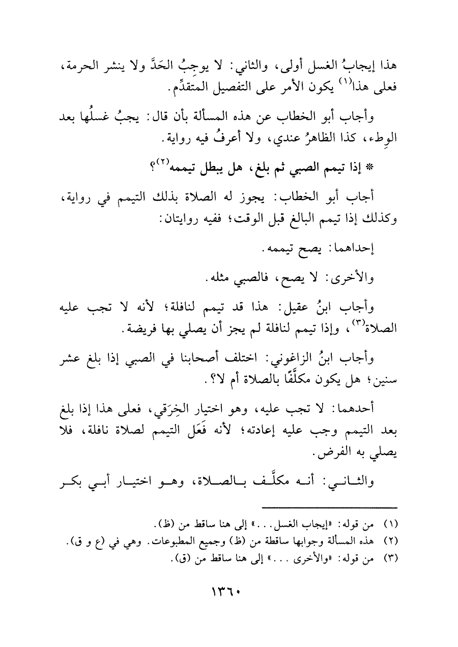 (¬٢) هذه المسألة وجوابها ساقطة من (ظ) وجميع المطبوعات. وهي في (ع وق).