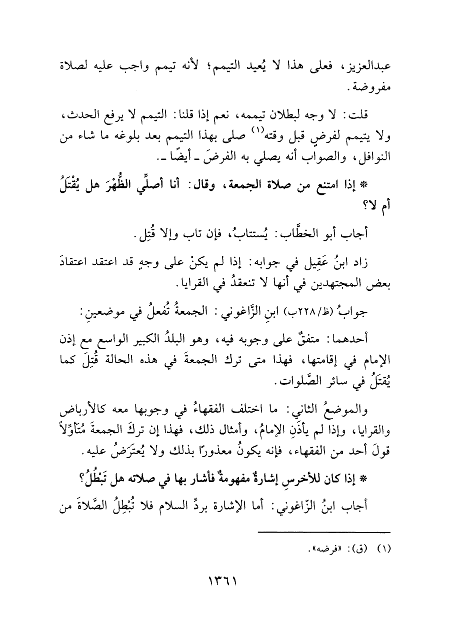 جوابُ ابنِ الزَّغواني: الجمعةُ تُفعلُ في موضعينِ: