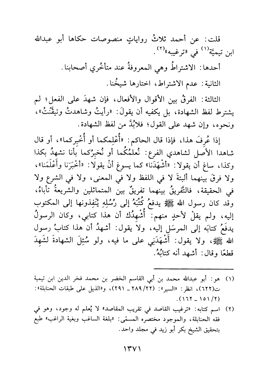 (¬٢) اسم كتابه: "ترغيب المقاصد في تقريب المقاصد" لا يُعلم له وجود، وهو في فقه الحنابلة، والموجود مختصره المسمّى: "بلغة الساغب وبغية الراغب" طبع بتحقيق الشَّيخ بكر أبو زيد في مجلد واحد.