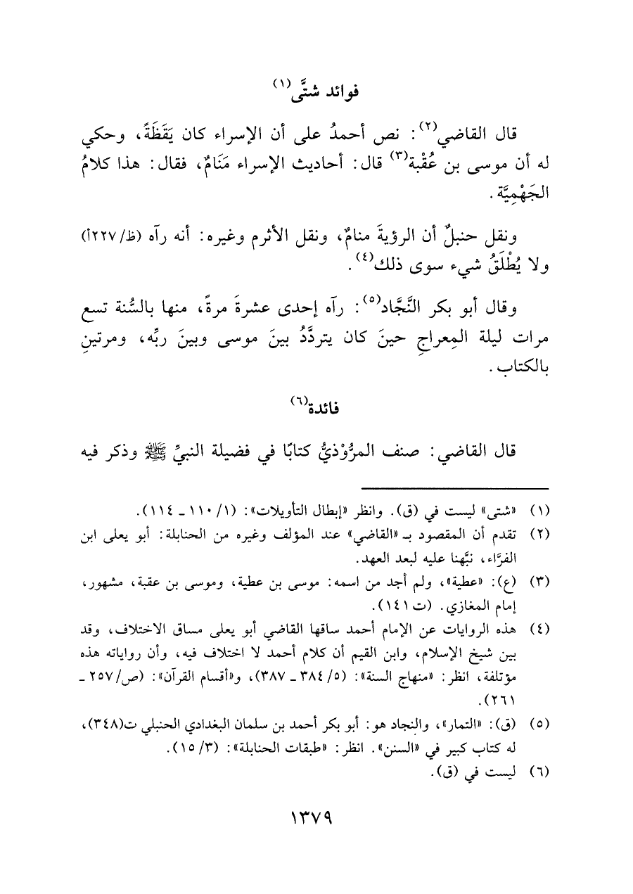 (¬٢) تقدم أن المقصود بـ "القاضي" عند المؤلف وغيره من الحنابلة أبو يعلى ابن الفرَّاء، نبَّهنا عليه لبعد العهد.