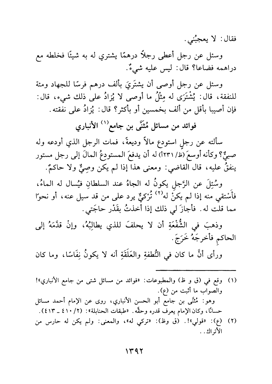 فوائد من مسائل مُثَنَّى بن جامع (¬١) الأنباري