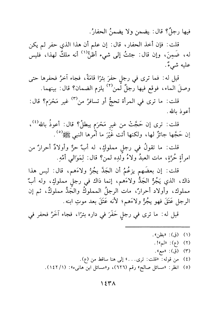 (¬٥) انظر: "مسائل صالح" رقم (٦٢٦)، و"مسائل ابن هانئ": (١/ ١٤٢)