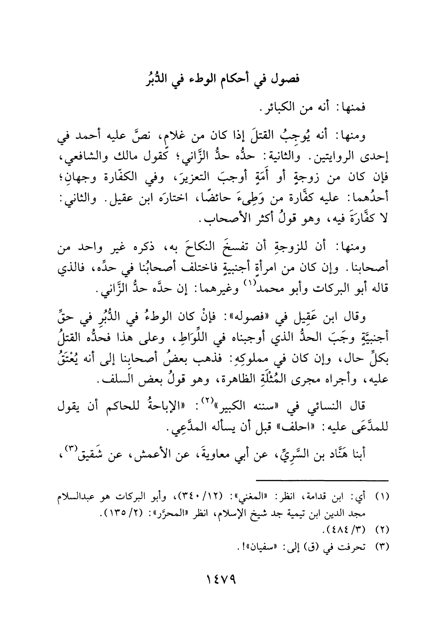 (¬١) أي: ابن قدامة، انظر: "المغني": (١٢/ ٣٤٠)، وأبو البركات هو عبد السلام مجد الدين ابن تيمية جد شيخ الإسلام، انظر "المحرَّر": (٢/ ١٣٥).