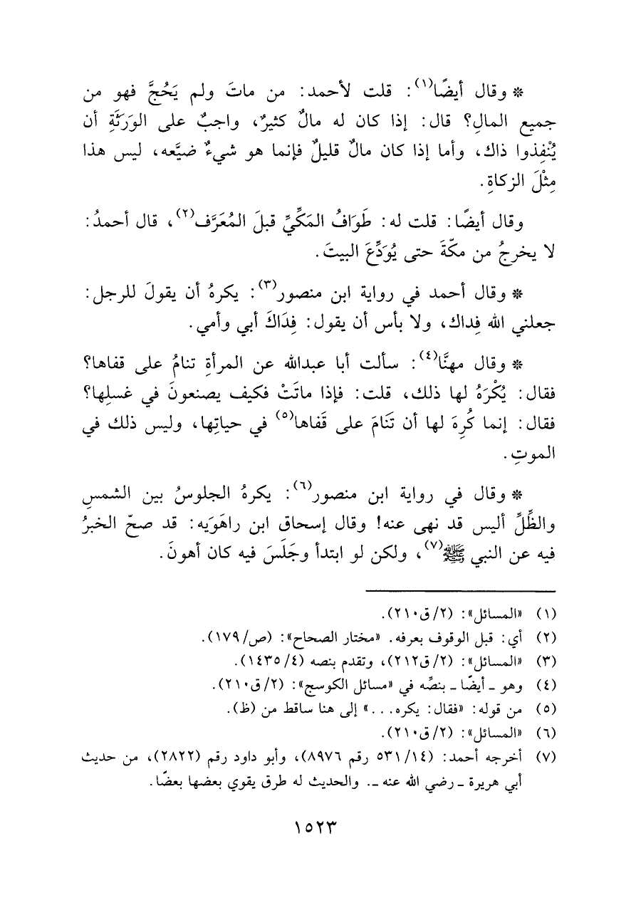 (¬٣) "المسائل": (٢/ ق ٢١٢)، وتقدم بنصه (٤/ ١٤٣٥).