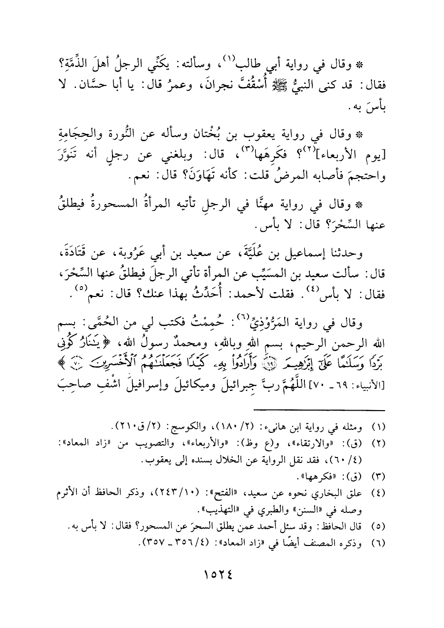 (¬٥) قال الحافظ: وقد سئل أحمد عمن يطلق السحرَ عن المسحور؟ فقال: لا بأس به.