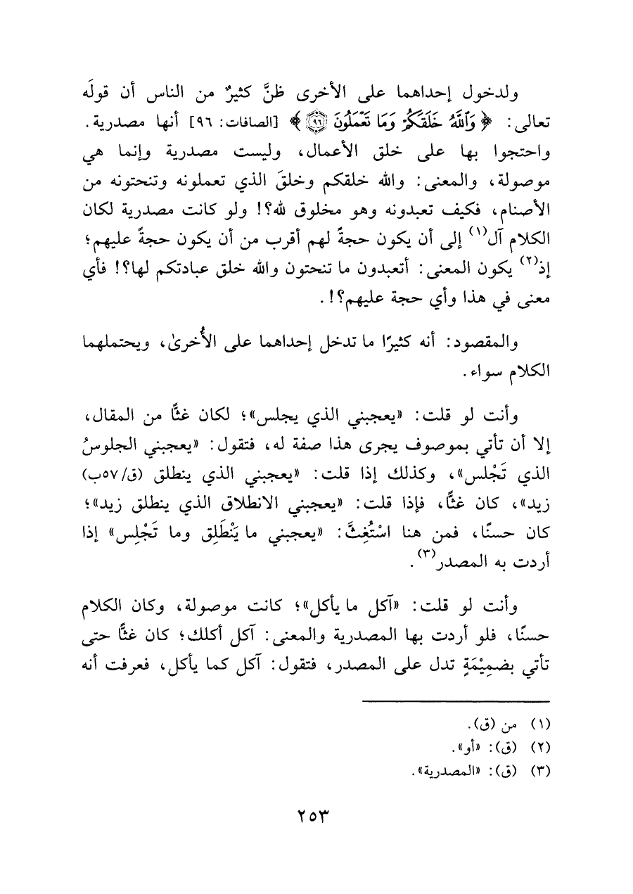 (¬٣) (ق): "المصدرية".