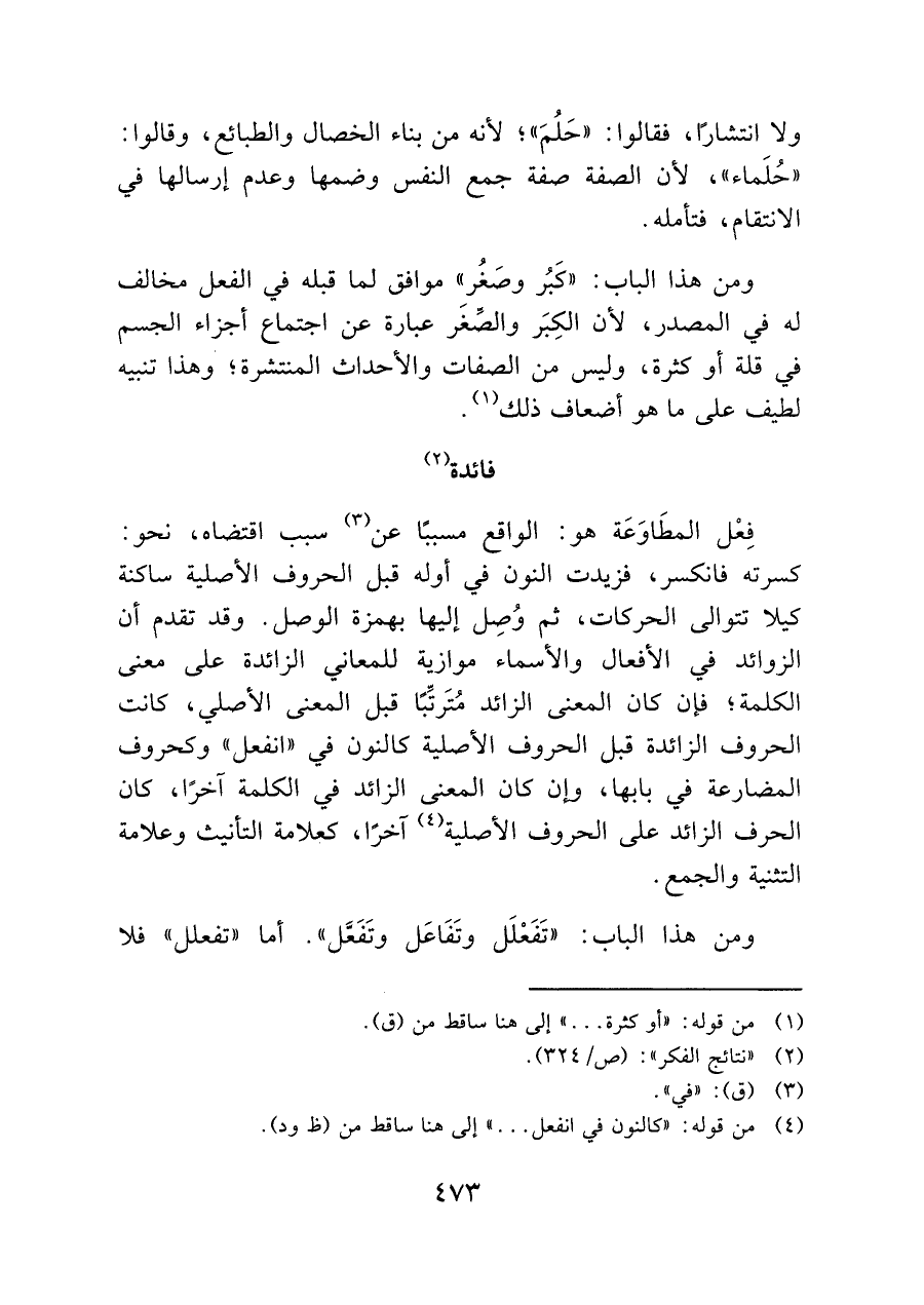 (¬٤) من قوله: "كالنون في انفعل ... " إلى هنا ساقط من (ظ ود).