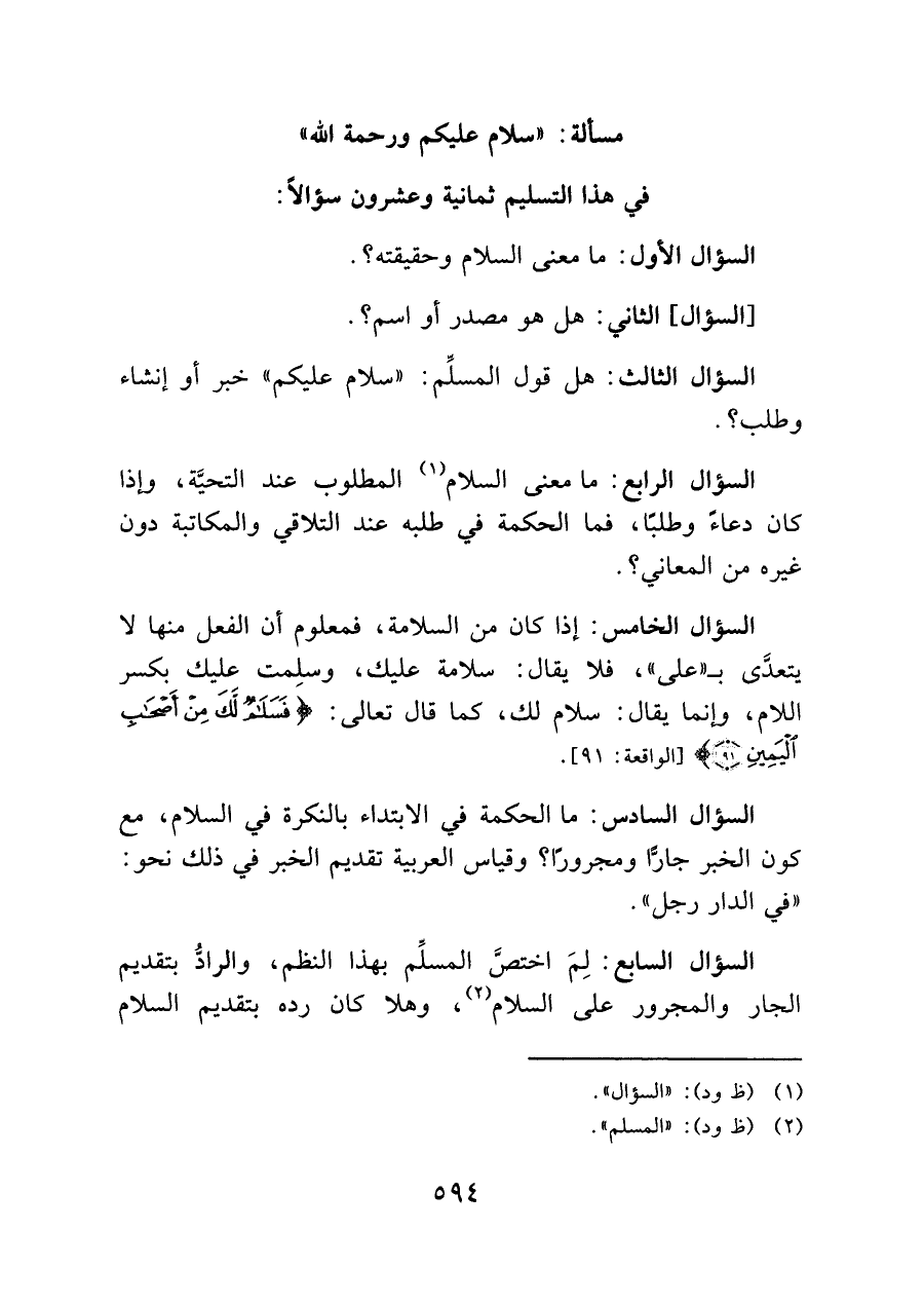 مسألة: "سلام عليكم ورحمة الله" في هذا التسليم ثمانية وعشرون سؤالاً: