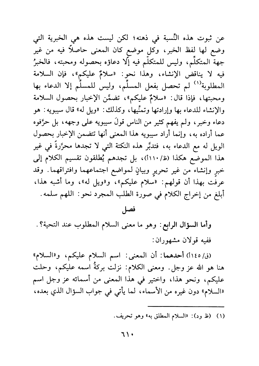 (¬١) (ظ ود) "السلام المطلق به" وهو تحريف.