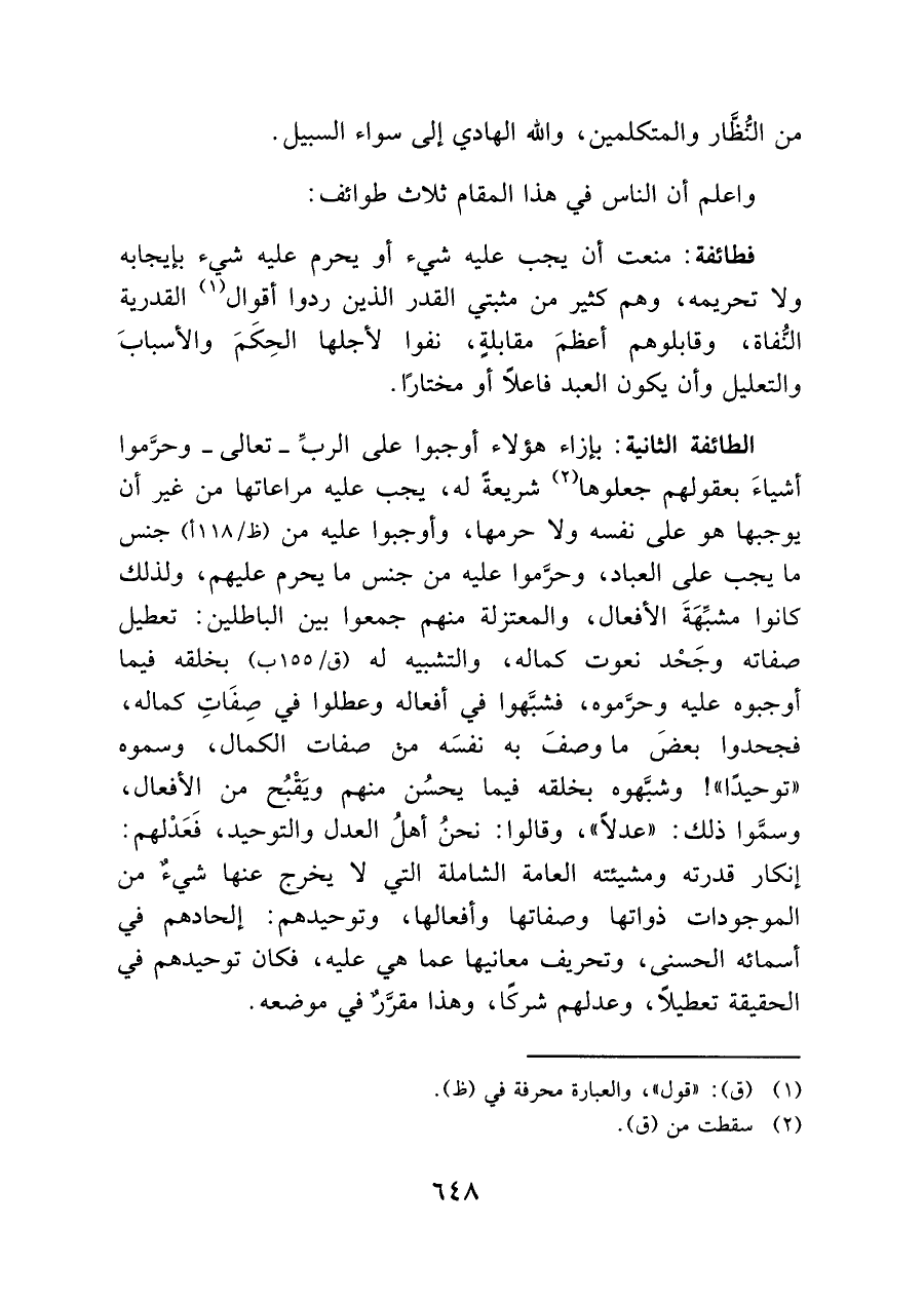 من النُّظَّار والمتكلمين، والله الهادي إلى سواء السبيل.