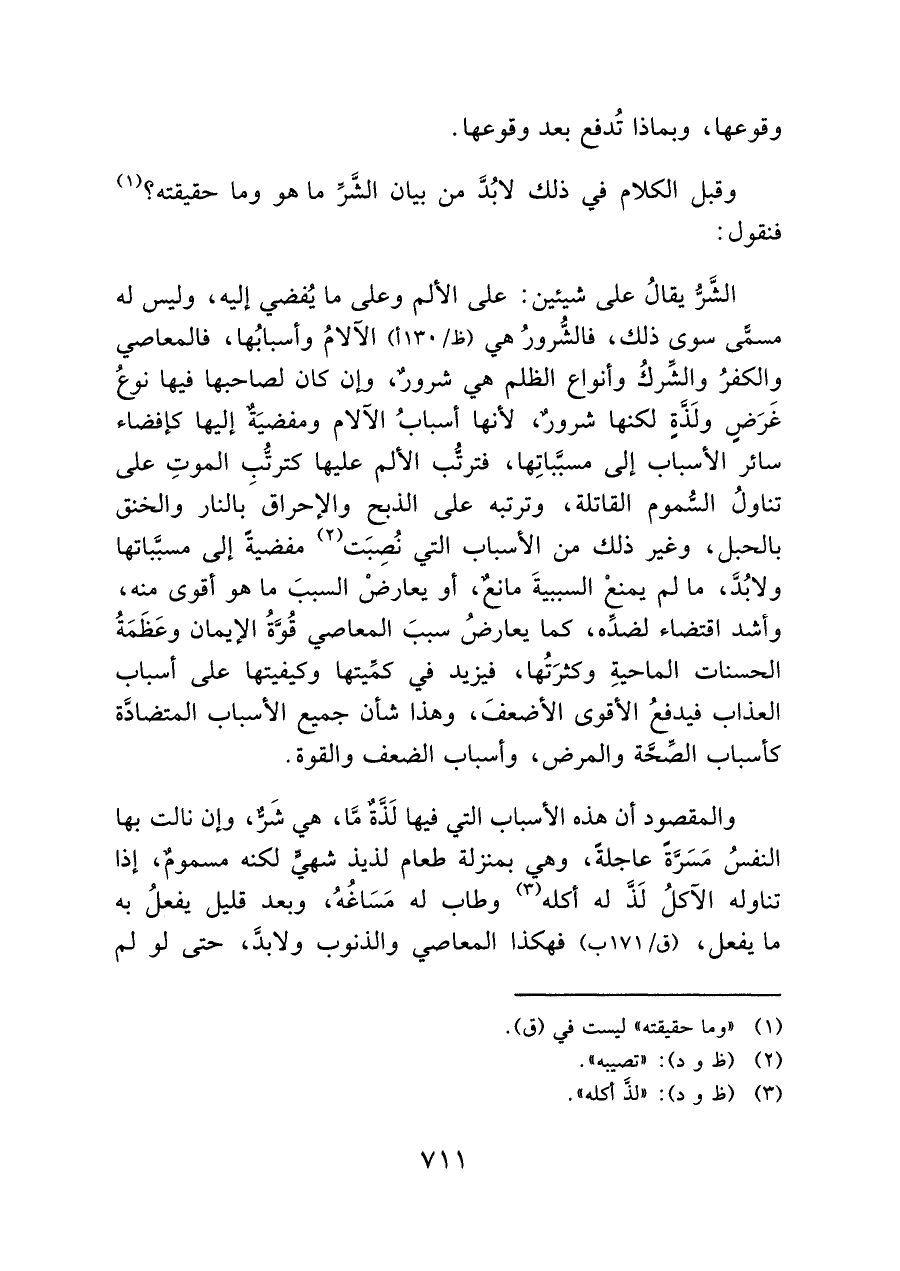 وقبل الكلام في ذلك لابد من بيان الشَرِّ ما هو وما حقيقته؟ (¬١) فنقول: