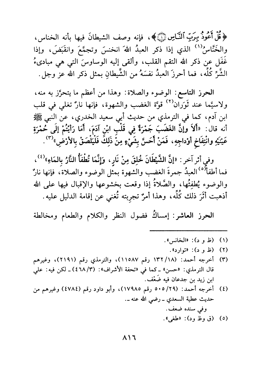 الحرز العاشر: إمساكُ فضول النظر والكلام والطعام ومخالطة