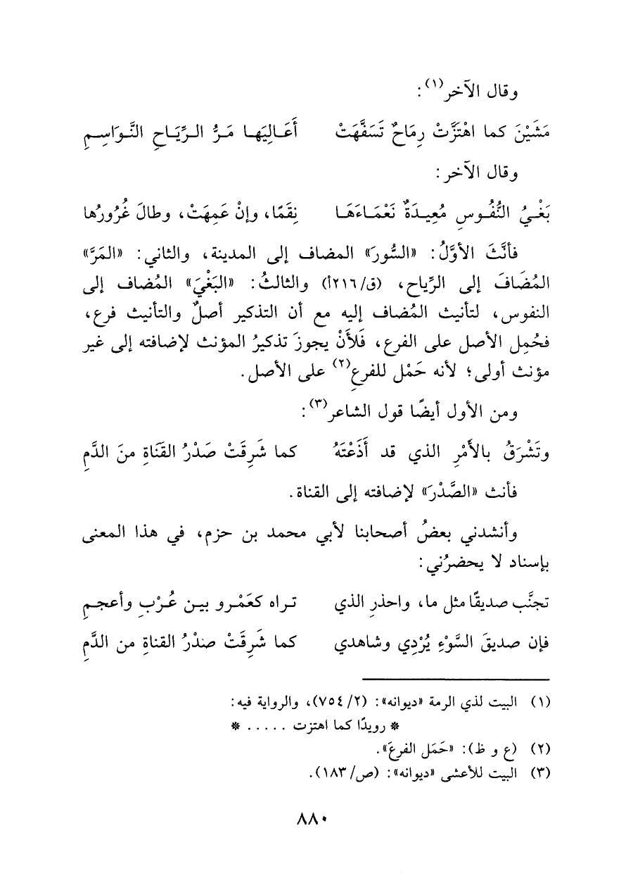 مَشَيْنَ كما اهْتَزَّتْ رِمَاحٌ تَسَفَّهَتْ ... أَعَالِيَها مَرُّ الرِّيَاحِ النَّوَاسِمِ