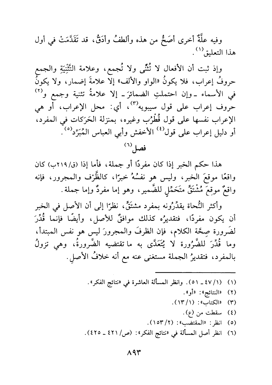 (¬٦) انظر أصل المسألة في "نتائج الفكر": (ص/ ٤٢١ - ٤٢٥).