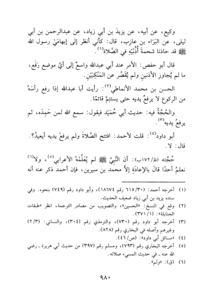 أبو داود (¬٤): قلت لأحمد: افتتح الصَّلاةَ ولم يرفعْ يديه أيعيدُ؟. قال: لا.