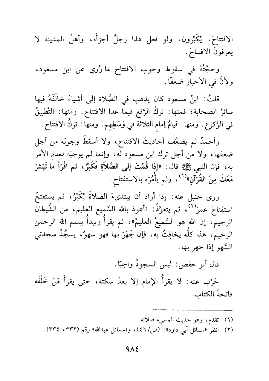 (¬٢) انظر "مسائل أبى داود": (ص/ ٤٦)، و"مسائل عبد الله" رقم (٣٣٢، ٣٣٤).