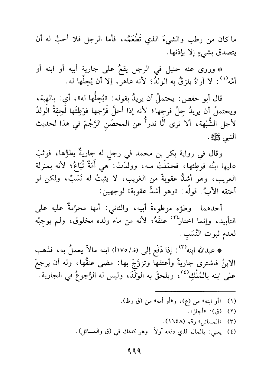 (¬٣) "المسائل" رقم (١٦٤٨).