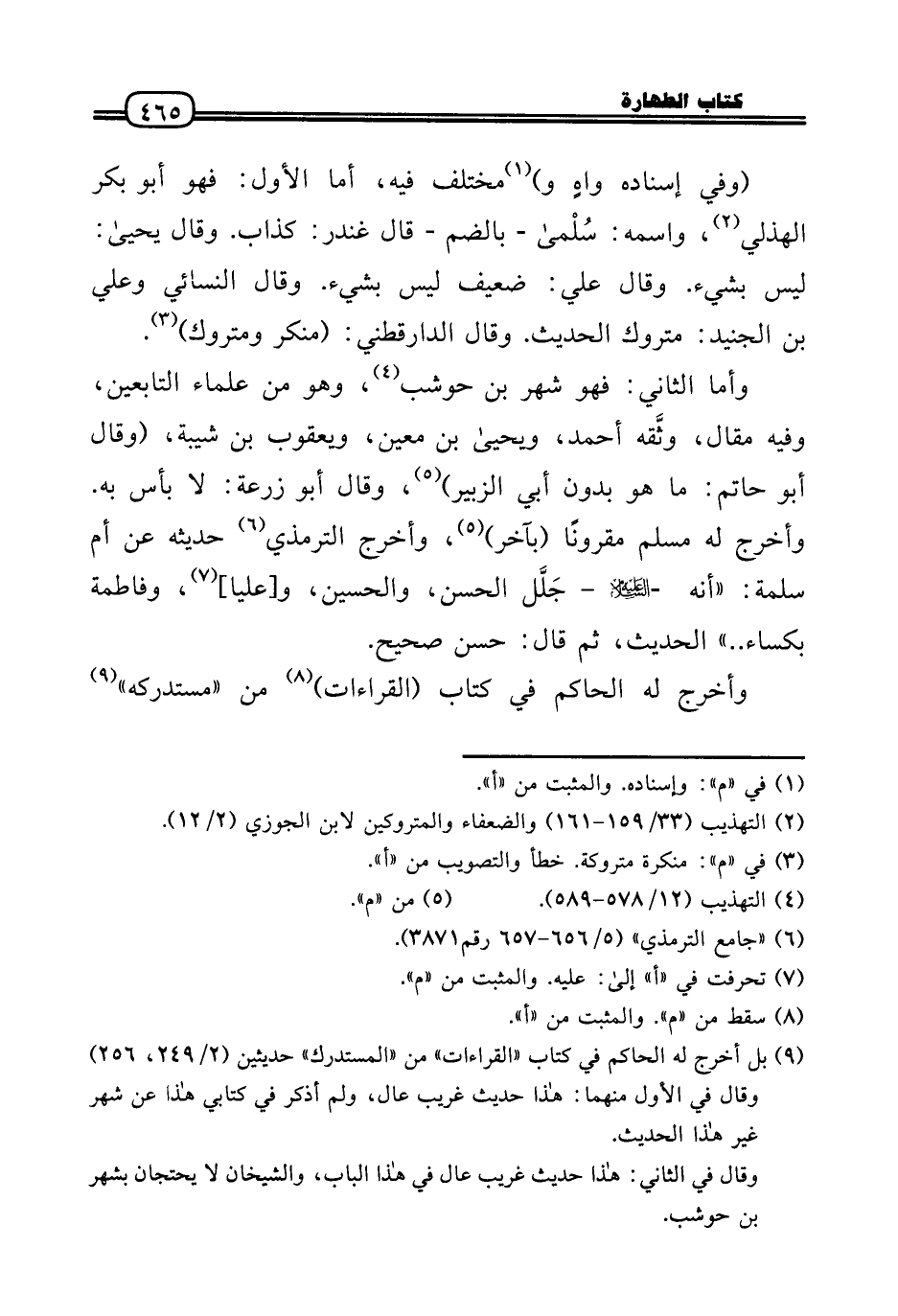 وَأما الثَّانِي: فَهُوَ شهر بن حَوْشَب، وَهُوَ من عُلَمَاء التَّابِعين، وَفِيه مقَال، وثَّقه أَحْمد، وَيَحْيَى بن معِين، وَيَعْقُوب بن شيبَة، (وَقَالَ أَبُو حَاتِم: مَا هُوَ بِدُونِ أبي الزبير) ، وَقَالَ أَبُو زرْعَة: لَا بَأْس بِهِ. وَأخرج لَهُ مُسلم مَقْرُونا (بآخر) ، وَأخرج التِّرْمِذِيّ حَدِيثه عَن أم سَلمَة: أَنه - عَلَيْهِ السَّلَام - جَلَّل الْحسن، وَالْحُسَيْن، و [عليا] ، وَفَاطِمَة بكساء. .» الحَدِيث، ثمَّ قَالَ: حسن صَحِيح.
