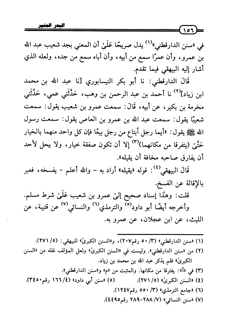 قَالَ الدَّارَقُطْنِيّ: نَا أَبُو بكر النَّيْسَابُورِي [نَا عبد الله بن مُحَمَّد بن زِيَاد] نَا أَحْمد بن عبد الرَّحْمَن بن وهب، حَدَّثَني عمي، حَدَّثَني مخرمَة بن بكير، عَن أَبِيه، قَالَ: سَمِعت عَمْرو بن شُعَيْب يَقُول: سَمِعت شعيبًا يَقُول: سَمِعت عبد الله بن عَمْرو بن الْعَاصِ يَقُول: سَمِعت رَسُول الله - صَلَّى الله عَلَيْهِ وَسلم - يَقُول: «أَيّمَا رجل ابْتَاعَ من رجل بيعا فَإِن كل وَاحِد مِنْهُمَا بِالْخِيَارِ حَتَّى (يَتَفَرَّقَا من مكانهما) إِلَّا أَن تكون صَفْقَة خِيَار، وَلَا يحل لأحد أَن يُفَارق صَاحبه مَخَافَة أَن يقيله» .