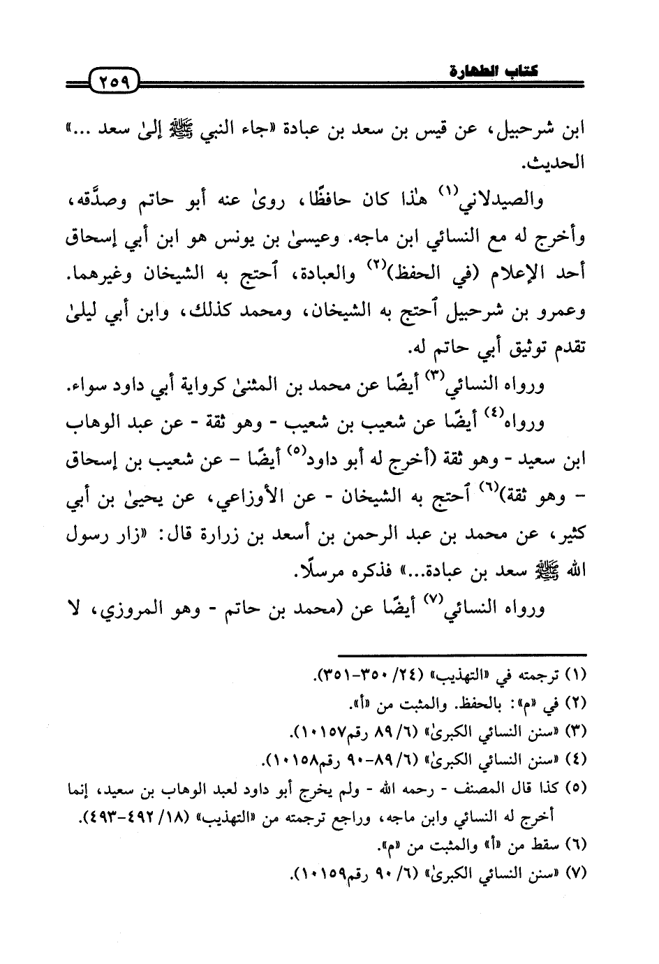 بن شُرَحْبِيل، عَن قيس بن سعد بن عبَادَة «جَاءَ النَّبِي - صَلَّى الله عَلَيْهِ وَسلم - إِلَى سعد ... » الحَدِيث.