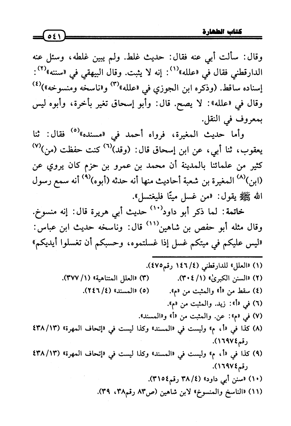 خَاتِمَة: لما ذكر أَبُو دَاوُد حَدِيث أبي هُرَيْرَة قَالَ: إِنَّه مَنْسُوخ. وَقَالَ مثله أَبُو حَفْص بن شاهين قَالَ: وناسخه حَدِيث ابْن عَبَّاس: «لَيْسَ عَلَيْكُم فِي ميتكم غسل إِذا غسلتموه، وحسبكم أَن تغسلوا أَيْدِيكُم»