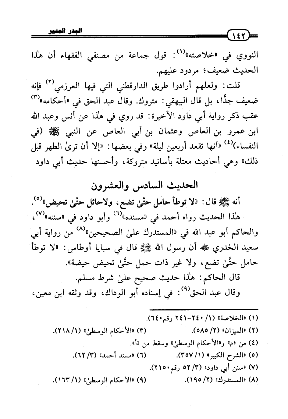 هَذَا الحَدِيث رَوَاهُ أَحْمد فِي «مُسْنده» وَأَبُو دَاوُد فِي «سنَنه» ، وَالْحَاكِم أَبُو عبد الله فِي «الْمُسْتَدْرك عَلَى الصَّحِيحَيْنِ» من رِوَايَة أبي سعيد الْخُدْرِيّ رَضي اللهُ عَنهُ أَن رَسُول الله صَلَّى اللَّهُ عَلَيْهِ وَسَلَّم َ قَالَ فِي سَبَايَا أَوْطَاس: «لَا تُوطأ حَامِل حتَّى تضع، وَلَا غير ذَات حمل حتَّى تحيض حَيْضَة» .