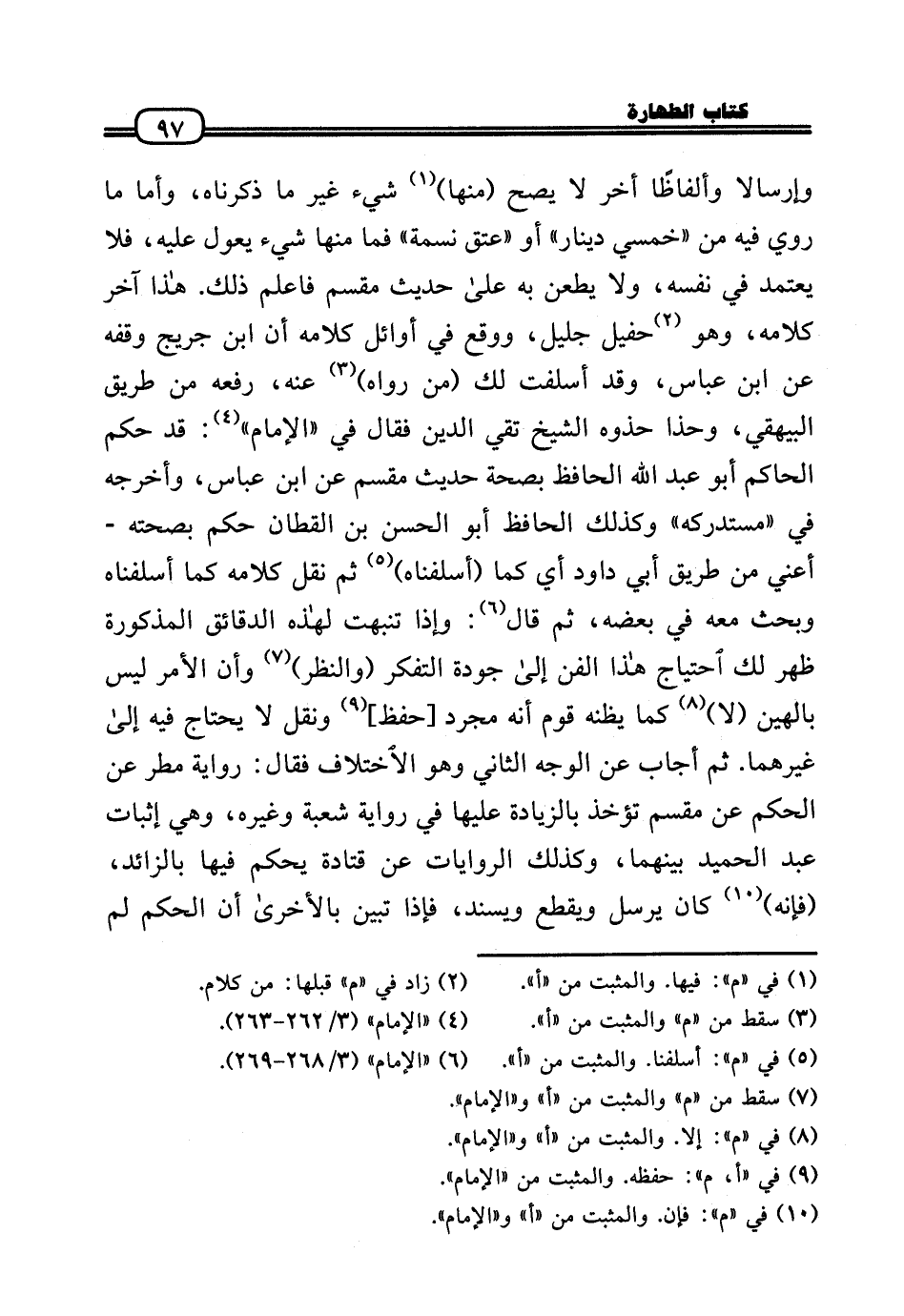 وإرسالا وألفاظًا أخر لَا يَصح (مِنْهَا) شَيْء غير مَا ذَكرْنَاهُ، وَأما مَا رُوِيَ فِيهِ من «خمسي دِينَار» أَو «عتق نسمَة» فَمَا مِنْهَا شَيْء يعول عَلَيْهِ، فَلَا يعْتَمد فِي نَفسه، وَلَا يطعن بِهِ عَلَى حَدِيث مقسم فَاعْلَم ذَلِك. هَذَا آخر كَلَامه، وَهُوَ حفيل جليل، وَوَقع فِي أَوَائِل كَلَامه أَن ابْن جريج وَقفه عَن ابْن عَبَّاس، وَقد أسلفت لَك (من رَوَاهُ) عَنهُ، رَفعه من طَرِيق الْبَيْهَقِيّ، وحذا حذوه الشَّيْخ تَقِيّ الدَّين فَقَالَ فِي «الإِمَام» : قد حكم الْحَاكِم أَبُو عبد الله الْحَافِظ بِصِحَّة حَدِيث مقسم عَن ابْن عَبَّاس، وَأخرجه فِي «مُسْتَدْركه» وَكَذَلِكَ الْحَافِظ أَبُو الْحسن بن الْقطَّان حكم بِصِحَّتِهِ - أَعنِي من طَرِيق أبي دَاوُد أَي كَمَا (أسلفناه) ثمَّ نقل كَلَامه كَمَا أسلفناه وَبحث مَعَه فِي بعضه، ثمَّ قَالَ: وَإِذا تنبهت لهَذِهِ الدقائق الْمَذْكُورَة ظهر لَك احْتِيَاج هَذَا الْفَنّ إِلَى جودة التفكر (وَالنَّظَر) وَأَن الْأَمر لَيْسَ بالهين (لَا) كَمَا يَظُنّهُ قوم أَنه مُجَرّد [حفظ] وَنقل لَا يحْتَاج فِيهِ إِلَى غَيرهمَا. ثمَّ أجَاب عَن الْوَجْه الثَّانِي وَهُوَ الِاخْتِلَاف فَقَالَ: رِوَايَة مطر عَن الحكم عَن مقسم تُؤْخَذ بِالزِّيَادَةِ عَلَيْهَا فِي رِوَايَة شُعْبَة وَغَيره، وَهِي إِثْبَات عبد الحميد بَينهمَا، وَكَذَلِكَ الرِّوَايَات عَن قَتَادَة يحكم فِيهَا بِالزَّائِدِ، (فَإِنَّهُ) كَانَ يُرْسل وَيقطع ويسند، فَإِذا تبين بِالْأُخْرَى أَن الحكم لم