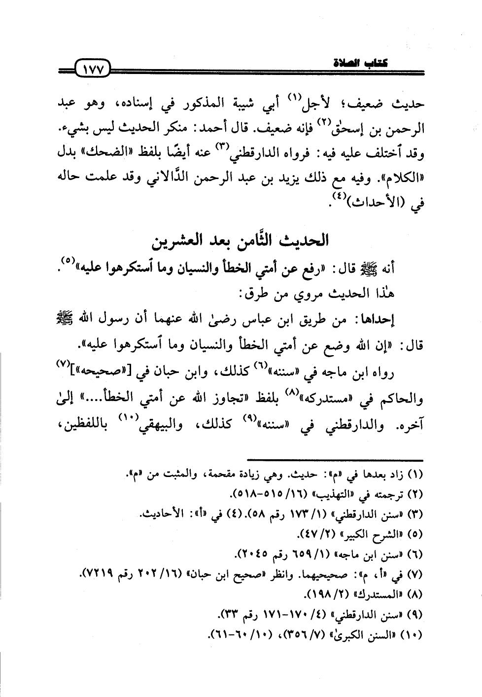 رَوَاهُ ابْن مَاجَه فِي «سنَنه» كَذَلِك، وَابْن حبَان فِي [ (صَحِيحه) ] وَالْحَاكِم فِي «مُسْتَدْركه» بِلَفْظ «تجَاوز الله عَن أمتِي الْخَطَأ ... .» إِلَى آخِره. وَالدَّارَقُطْنِيّ فِي «سنَنه» كَذَلِك، وَالْبَيْهَقِيّ باللفظين،