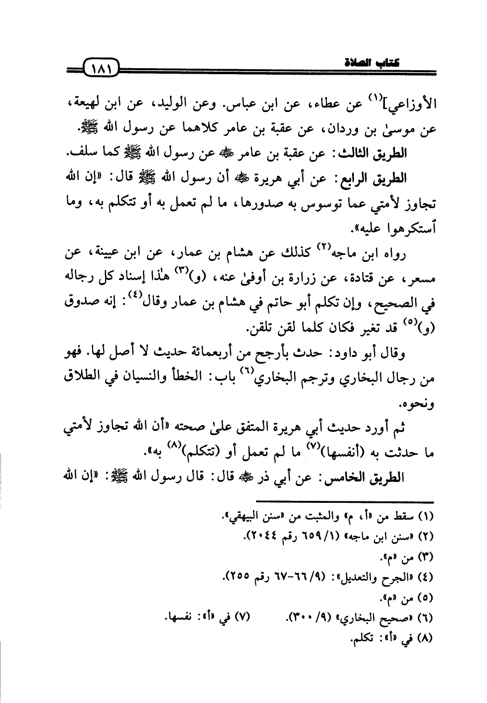 ثمَّ أورد حَدِيث أبي هُرَيْرَة الْمُتَّفق عَلَى صِحَّته «أَن الله تجَاوز لأمتي مَا حدثت بِهِ (أَنْفسهَا) مَا لم تعْمل أَو (تَتَكَلَّم) بِهِ» .