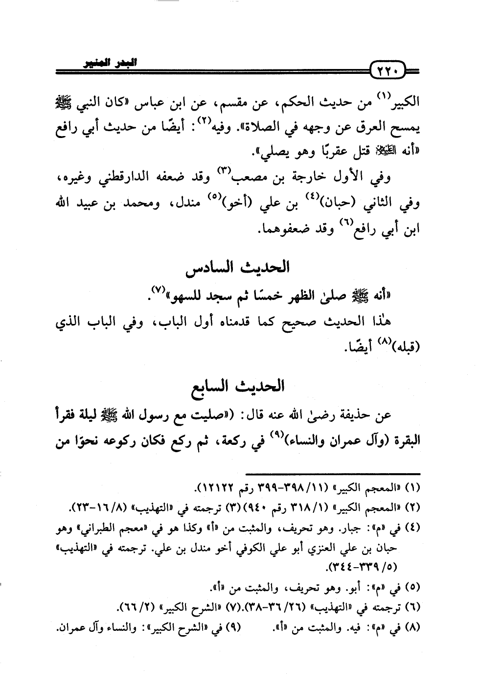 الْكَبِير من حَدِيث الحكم، عَن مقسم، عَن ابْن عَبَّاس «كَانَ النَّبِي - صَلَّى الله عَلَيْهِ وَسلم - يمسح الْعرق عَن وَجهه فِي الصَّلَاة» . وَفِيه: أَيْضا من حَدِيث أبي رَافع «أَنه عَلَيْهِ السَّلَام قتل عقربًا وَهُوَ يُصَلِّي» .