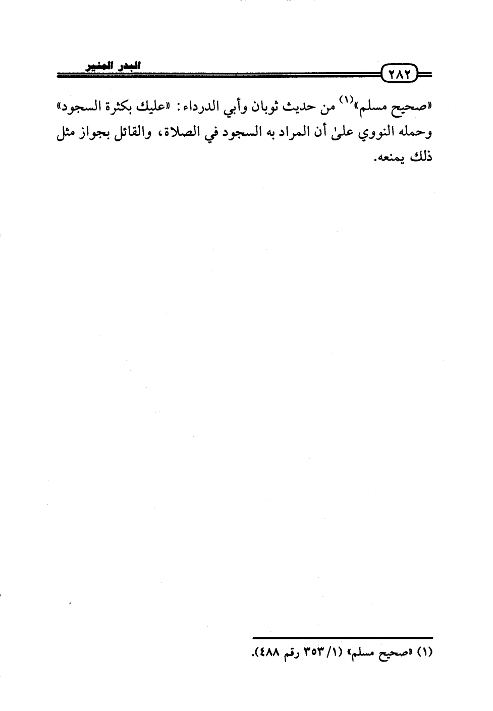 «صَحِيح مُسلم» من حَدِيث ثَوْبَان وَأبي الدَّرْدَاء: «عَلَيْك بِكَثْرَة السُّجُود» وَحمله النَّوَوِيّ عَلَى أَن المُرَاد بِهِ السُّجُود فِي الصَّلَاة، وَالْقَائِل بِجَوَاز مثل ذَلِك يمنعهُ.