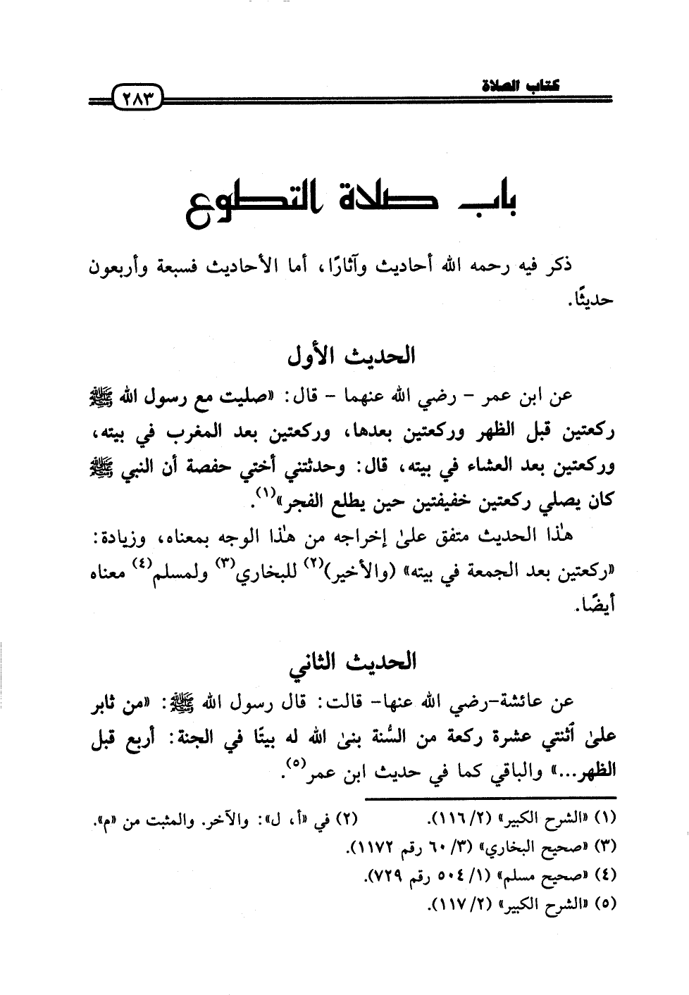 هَذَا الحَدِيث مُتَّفق عَلَى إِخْرَاجه من هَذَا الْوَجْه بِمَعْنَاهُ، وَزِيَادَة: «رَكْعَتَيْنِ بعد الْجُمُعَة فِي بَيته» (والأخير) للْبُخَارِيّ وَلمُسلم مَعْنَاهُ أَيْضا.