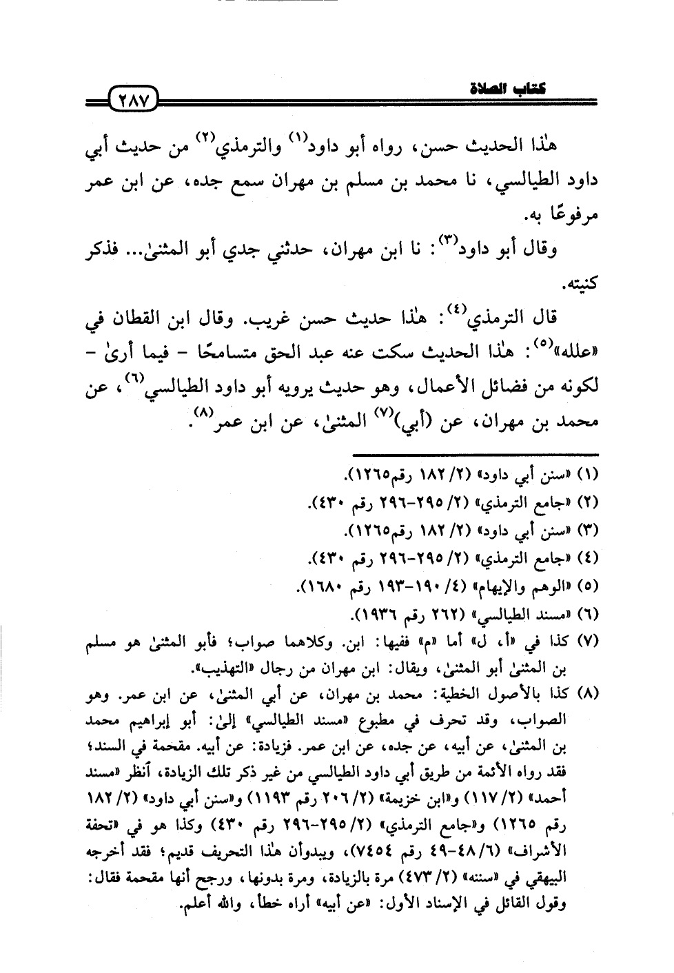 قَالَ التِّرْمِذِيّ: هَذَا حَدِيث حسن غَرِيب. وَقَالَ ابْن الْقطَّان فِي «علله» : هَذَا الحَدِيث سكت عَنهُ عبد الْحق متسامحًا - فِيمَا أرَى - لكَونه من فَضَائِل الْأَعْمَال، وَهُوَ حَدِيث يرويهِ أَبُو دَاوُد الطَّيَالِسِيّ، عَن مُحَمَّد بن مهْرَان، عَن (أبي) الْمثنى، عَن ابْن عمر.