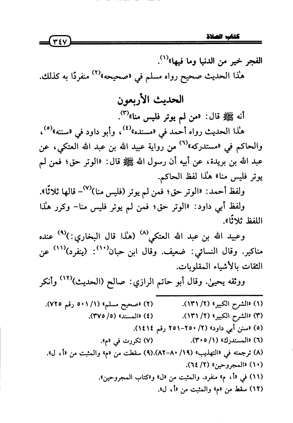 هَذَا الحَدِيث رَوَاهُ أَحْمد فِي «مُسْنده» ، وَأَبُو دَاوُد فِي «سنَنه» ، وَالْحَاكِم فِي «مُسْتَدْركه» من رِوَايَة عبيد الله بن عبد الله الْعَتكِي، عَن عبد الله بن بُرَيْدَة، عَن أَبِيه أَن رَسُول الله - صَلَّى الله عَلَيْهِ وَسلم - قَالَ: «الْوتر حق؛ فَمن لم يُوتر فَلَيْسَ منا» هَذَا لفظ الْحَاكِم.