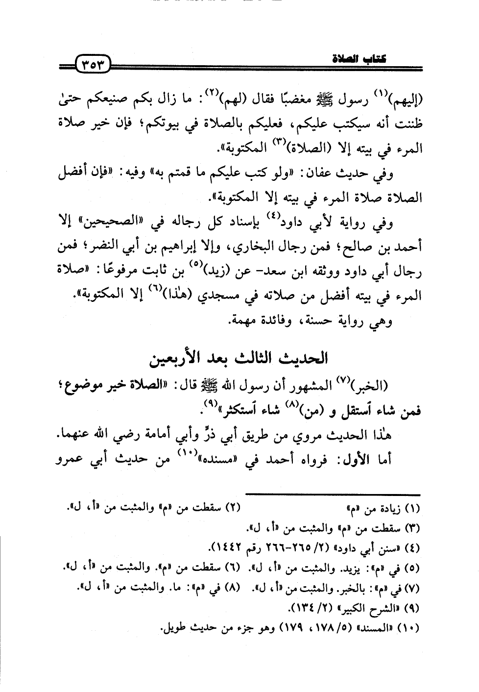 وَفِي رِوَايَة لأبي دَاوُد بِإِسْنَاد كل رِجَاله فِي «الصَّحِيحَيْنِ» إِلَّا أَحْمد بن صَالح؛ فَمن رجال البُخَارِيّ، وَإِلَّا إِبْرَاهِيم بن أبي النَّضر؛ فَمن رجال أبي دَاوُد وَوَثَّقَهُ ابْن سعد - عَن (زيد) بن ثَابت مَرْفُوعا: «صَلَاة الْمَرْء فِي بَيته أفضل من صلَاته فِي مَسْجِدي (هَذَا) إِلَّا الْمَكْتُوبَة» .