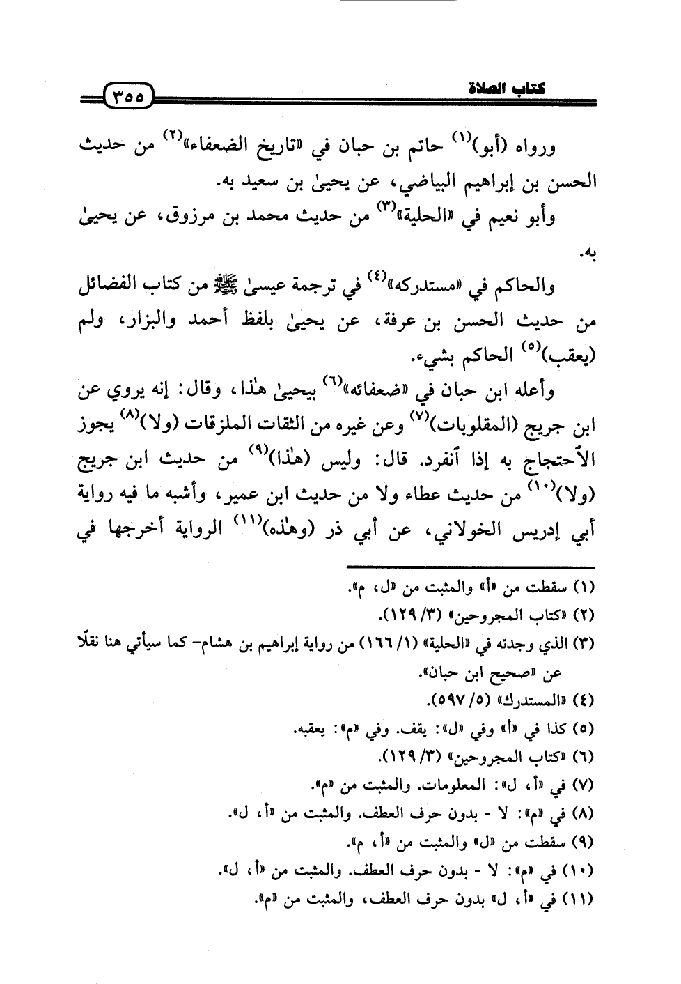وَأعله ابْن حبَان فِي «ضُعَفَائِهِ» بِيَحْيَى هَذَا، وَقَالَ: إِنَّه يروي عَن ابْن جريج (المقلوبات) وَعَن غَيره من الثِّقَات الملزقات (وَلَا) يجوز الِاحْتِجَاج بِهِ إِذا انْفَرد. قَالَ: وَلَيْسَ (هَذَا) من حَدِيث ابْن جريج (وَلَا) من حَدِيث عَطاء وَلَا من حَدِيث ابْن عُمَيْر، وأشبه مَا فِيهِ رِوَايَة أبي إِدْرِيس الْخَولَانِيّ، عَن أبي ذَر (وَهَذِه) الرِّوَايَة أخرجهَا فِي