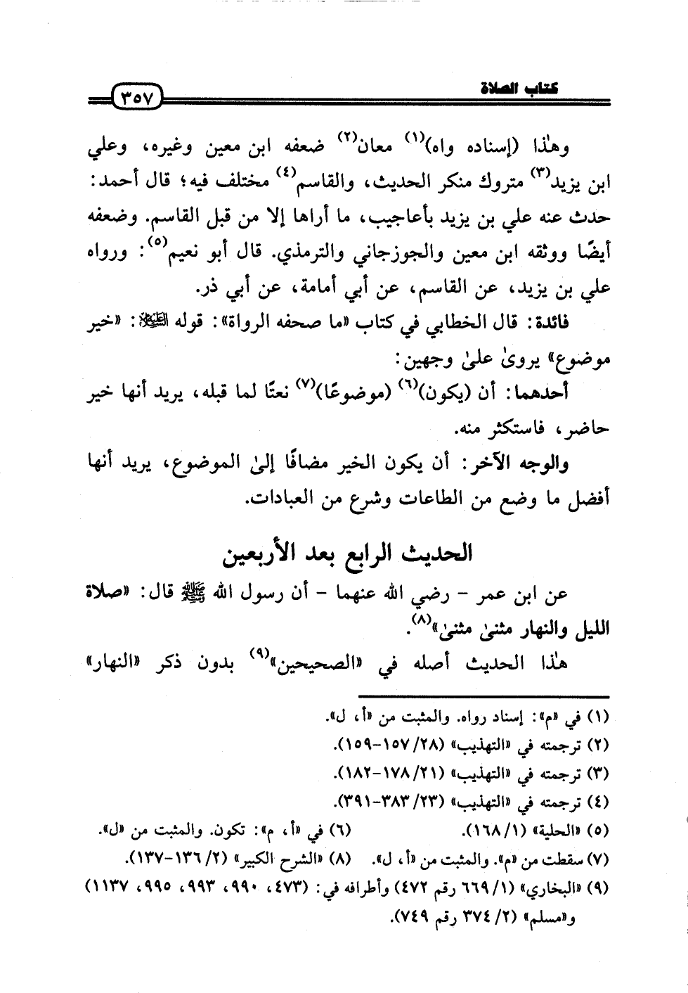 عَن ابْن عمر - رَضِيَ اللَّهُ عَنْهما - أَن رَسُول الله - صَلَّى الله عَلَيْهِ وَسلم - قَالَ: «صَلَاة اللَّيْل وَالنَّهَار مثنى مثنى» .