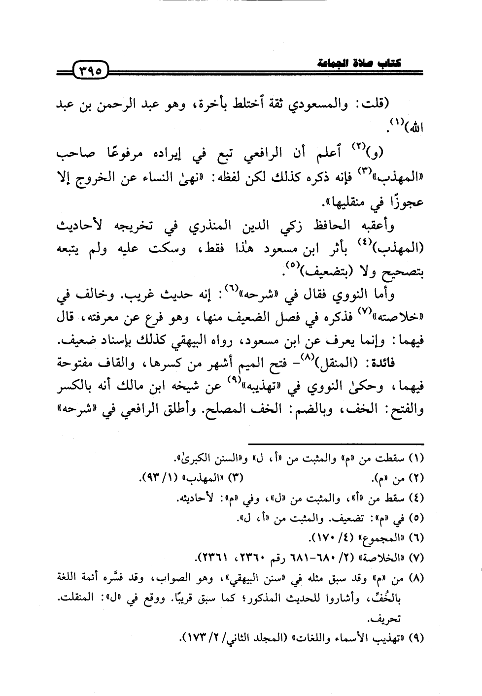 (و) اعْلَم أَن الرَّافِعِيّ تبع فِي إِيرَاده مَرْفُوعا صَاحب «الْمُهَذّب» فَإِنَّهُ ذكره كَذَلِك لَكِن لَفظه: «نهَى النِّسَاء عَن الْخُرُوج إِلَّا عجوزًا فِي منقليها» .