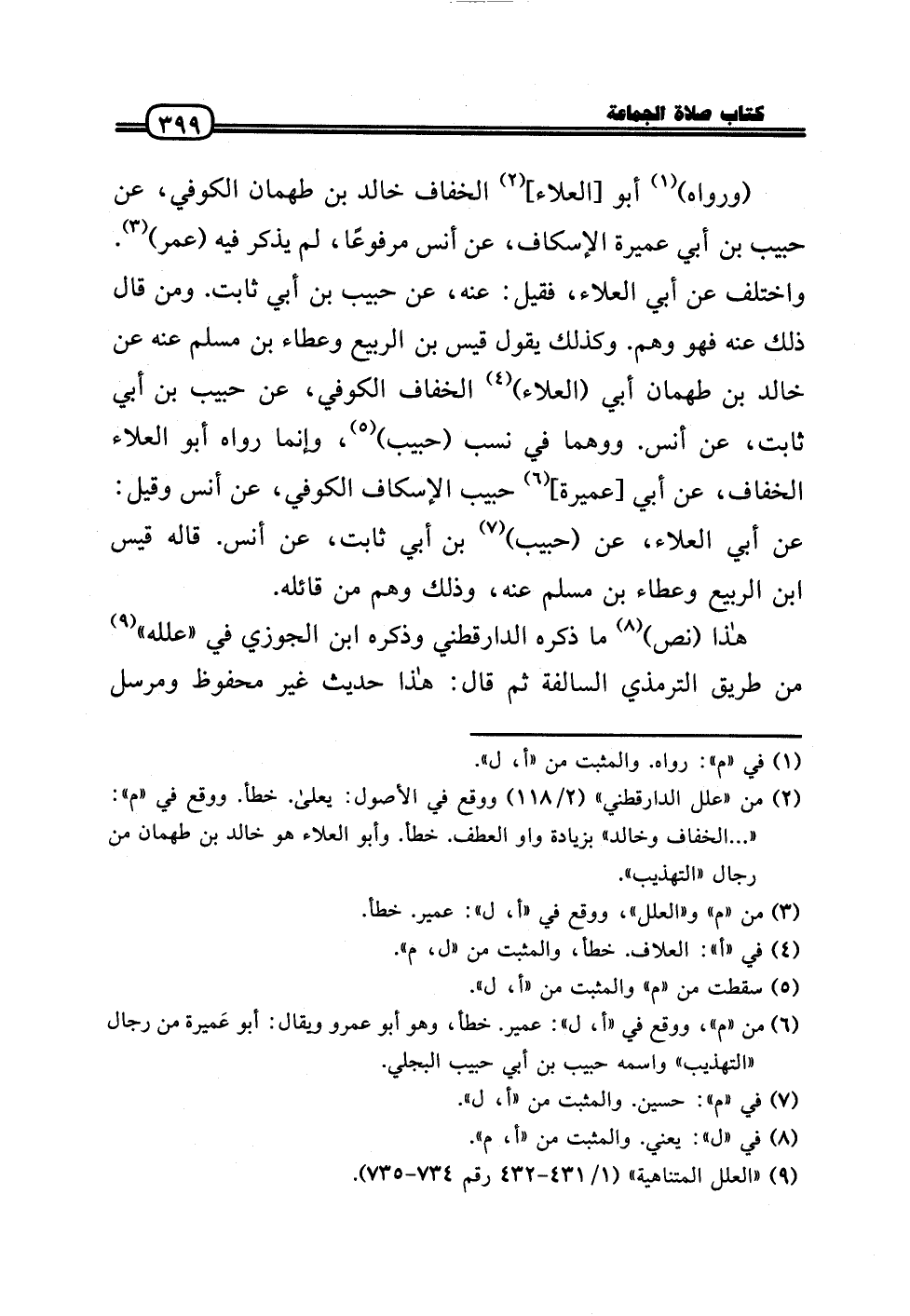 (وَرَوَاهُ) أَبُو [الْعَلَاء] الْخفاف خَالِد بن طهْمَان الْكُوفِي، عَن حبيب بن أبي عميرَة الإسكاف، عَن أنس مَرْفُوعا، لم يذكر فِيهِ (عمر) . وَاخْتلف عَن أبي الْعَلَاء، فَقيل: عَنهُ، عَن حبيب بن أبي ثَابت. وَمن قَالَ ذَلِك عَنهُ فَهُوَ وهم. وَكَذَلِكَ يَقُول قيس بن الرّبيع وَعَطَاء بن مُسلم عَنهُ عَن خَالِد بن طهْمَان أبي (الْعَلَاء) الْخفاف الْكُوفِي، عَن حبيب بن أبي ثَابت، عَن أنس. ووهما فِي نسب (حبيب) ، وَإِنَّمَا رَوَاهُ أَبُو الْعَلَاء الْخفاف، عَن أبي [عميرَة] حبيب الإسكاف الْكُوفِي، عَن أنس وَقيل: عَن أبي الْعَلَاء، عَن (حبيب) بن أبي ثَابت، عَن نس. قَالَه قيس بن الرّبيع وَعَطَاء بن مُسلم عَنهُ، وَذَلِكَ وهم من قَائِله.