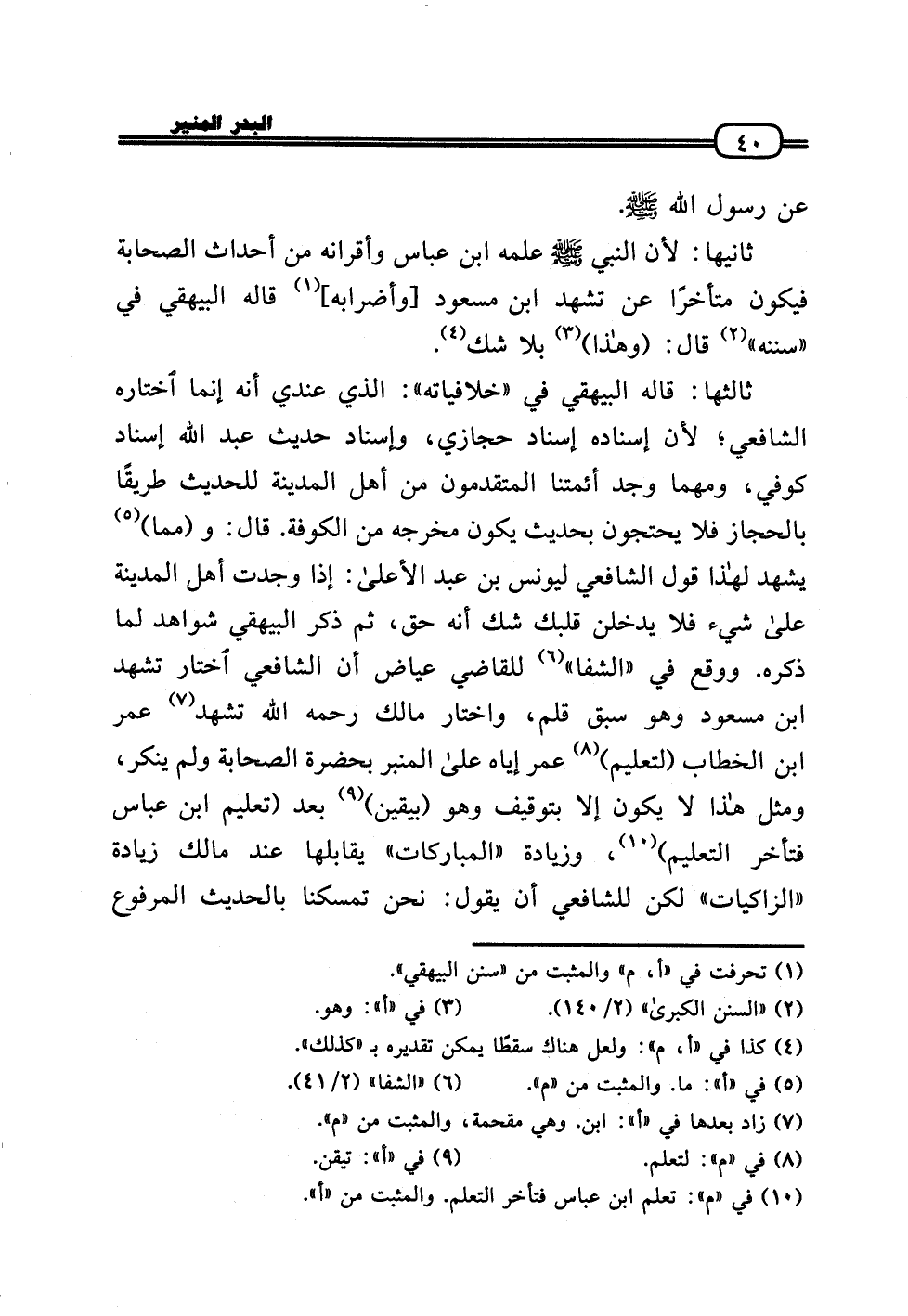 ثَانِيهَا: لِأَن النَّبِي - صَلَّى الله عَلَيْهِ وَسلم - علمه ابْن عَبَّاس وأقرانه من أَحْدَاث الصَّحَابَة فَيكون مُتَأَخِّرًا عَن تشهد ابْن مَسْعُود [وَأَضْرَابه] قَالَه الْبَيْهَقِيّ فِي «سنَنه» قَالَ: (وَهَذَا) بِلَا شكّ.