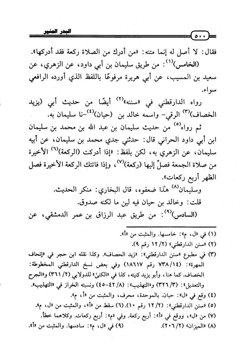 ثمَّ رَوَاهُ من حَدِيث سُلَيْمَان بن عبد الله بن مُحَمَّد بن سُلَيْمَان بن أبي دَاوُد الْحَرَّانِي قَالَ: حَدثنِي جدي مُحَمَّد بن سُلَيْمَان، عَن أَبِيه سُلَيْمَان، عَن الزُّهْرِيّ بِهِ، لَكِن بِلَفْظ: «إِذا أدْركْت (الرَّكْعَة) الْأَخِيرَة من صَلَاة الْجُمُعَة فصلِّ إِلَيْهَا (رَكْعَة) ، وَإِذا فاتتك الرَّكْعَة الْأَخِيرَة فصل الظّهْر أَربع رَكْعَات» .