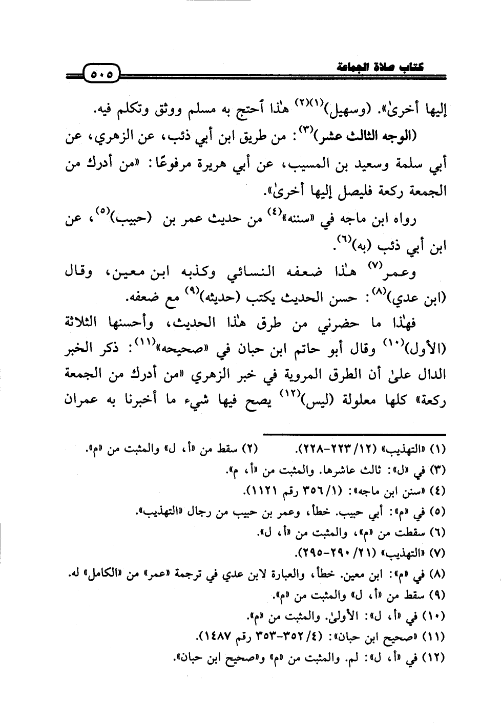 فَهَذَا مَا حضرني من طرق هَذَا الحَدِيث، وأحسنها الثَّلَاثَة (الأول) وَقَالَ أَبُو حَاتِم ابْن حبَان فِي «صَحِيحه» : ذكر الْخَبَر الدَّال عَلَى أَن الطّرق المروية فِي خبر الزُّهْرِيّ «من أدْرك من الْجُمُعَة رَكْعَة» كلهَا معلولة (لَيْسَ) يَصح فِيهَا شَيْء مَا أخبرنَا بِهِ عمرَان