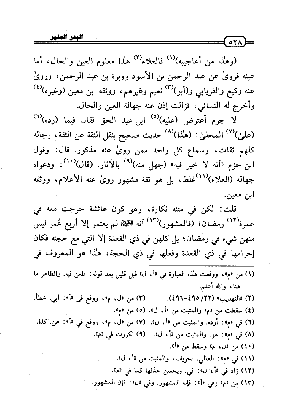 قلت: لَكِن فِي مَتنه نَكَارَة، وَهُوَ كَون عَائِشَة خرجت مَعَه فِي عمْرَة رَمَضَان؛ (فَالْمَشْهُور) أَنه عَلَيْهِ السَّلَام لم يعْتَمر إِلَّا أَربع عُمر لَيْسَ مِنْهُنَّ شَيْء فِي رَمَضَان؛ بل كُلهنَّ فِي ذِي الْقعدَة إِلَّا الَّتِي مَعَ حجَّته فَكَانَ إحرامها فِي ذِي الْقعدَة وفعلها فِي ذِي الْحجَّة، هَذَا هُوَ الْمَعْرُوف فِي