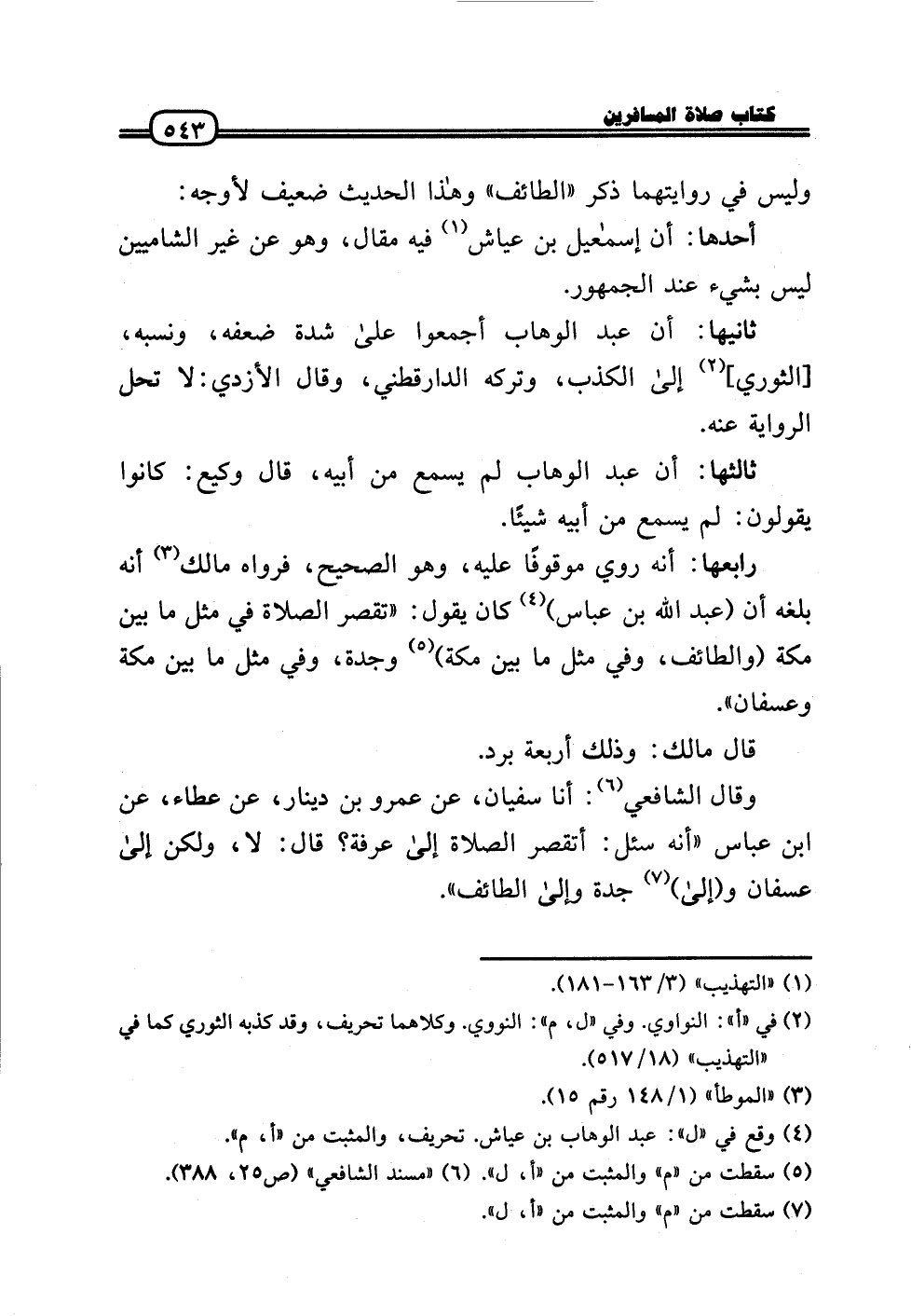 رَابِعهَا: أَنه رُوِيَ مَوْقُوفا عَلَيْهِ، وَهُوَ الصَّحِيح، فَرَوَاهُ مَالك أَنه بلغه أَن (عبد الله بن عَبَّاس) كَانَ يَقُول: «تقصر الصَّلَاة فِي مثل مَا بَين مَكَّة (والطائف، وَفِي مثل مَا بَين مَكَّة) وَجدّة، وَفِي مثل مَا بَين مَكَّة وَعُسْفَان» .