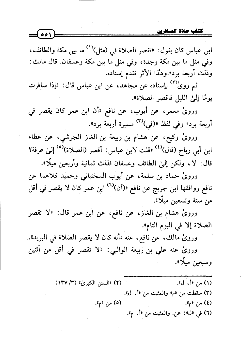 بن عَبَّاس كَانَ يَقُول: «تقصر الصَّلَاة فِي (مثل) مَا بَين مَكَّة والطائف، وَفِي مثل مَا بَين مَكَّة وَجدّة، وَفِي مثل مَا بَين مَكَّة وَعُسْفَان. قَالَ مَالك: وَذَلِكَ أَرْبَعَة برد» . وَهَذَا الْأَثر تقدم إِسْنَاده.