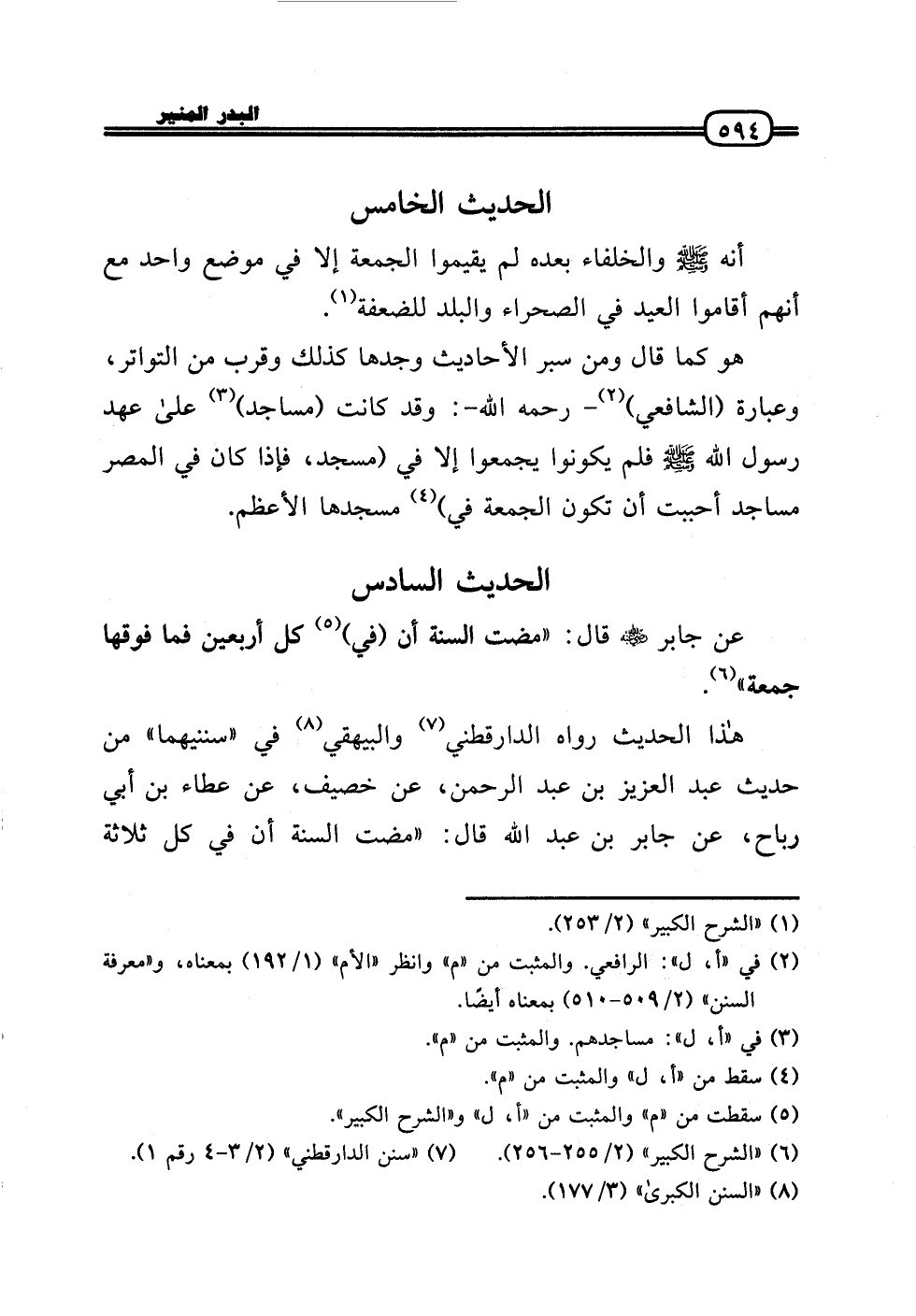 عَن جَابر رَضِيَ اللَّهُ عَنْه قَالَ: «مَضَت السّنة أَن (فِي) كل أَرْبَعِينَ فَمَا فَوْقهَا جُمُعَة» .