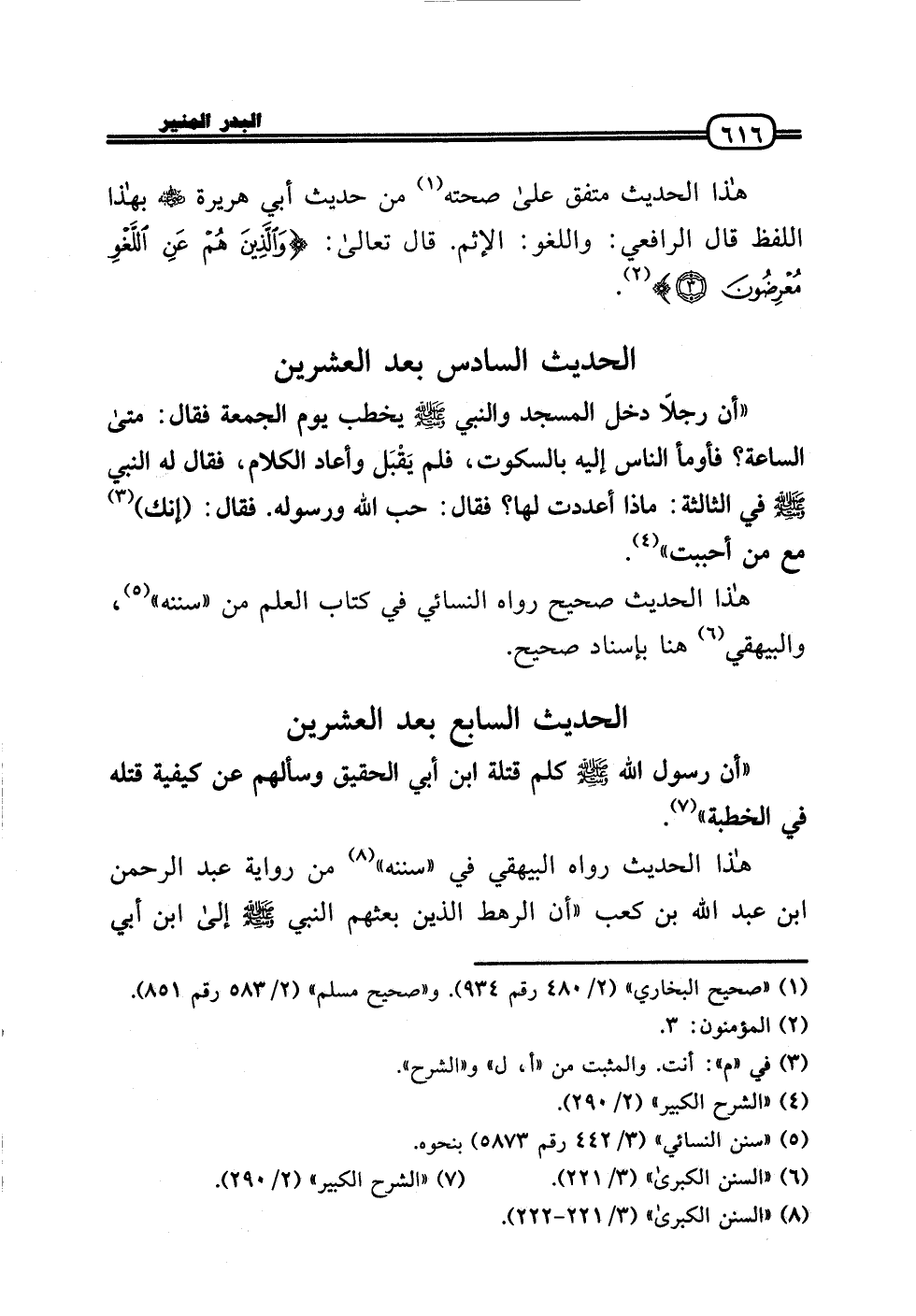 هَذَا الحَدِيث رَوَاهُ الْبَيْهَقِيّ فِي «سنَنه» من رِوَايَة عبد الرَّحْمَن بن عبد الله بن كَعْب «أَن الرَّهْط الَّذين بَعثهمْ النَّبِي - صَلَّى الله عَلَيْهِ وَسلم - إِلَى ابْن أبي