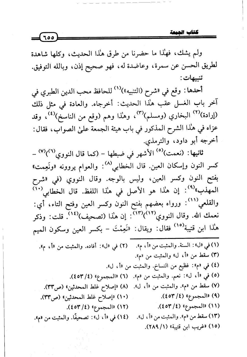 أَحدهَا: وَقع فِي «شرح (التَّنْبِيه» ) لِلْحَافِظِ محب الدَّين الطَّبَرِيّ فِي آخر بَاب الْغسْل عقب هَذَا الحَدِيث: أَخْرجَاهُ. وَالْعَادَة فِي مثل ذَلِك (إِرَادَة) البُخَارِيّ (وَمُسلم) ، وَهَذَا وهم (وَقع من النَّاسِخ) ، وَقد عزاهُ فِي هَذَا الشَّرْح الْمَذْكُور فِي بَاب هَيْئَة الْجُمُعَة عَلَى الصَّوَاب، فَقَالَ: أخرجه أَبُو دَاوُد، وَالتِّرْمِذِيّ.