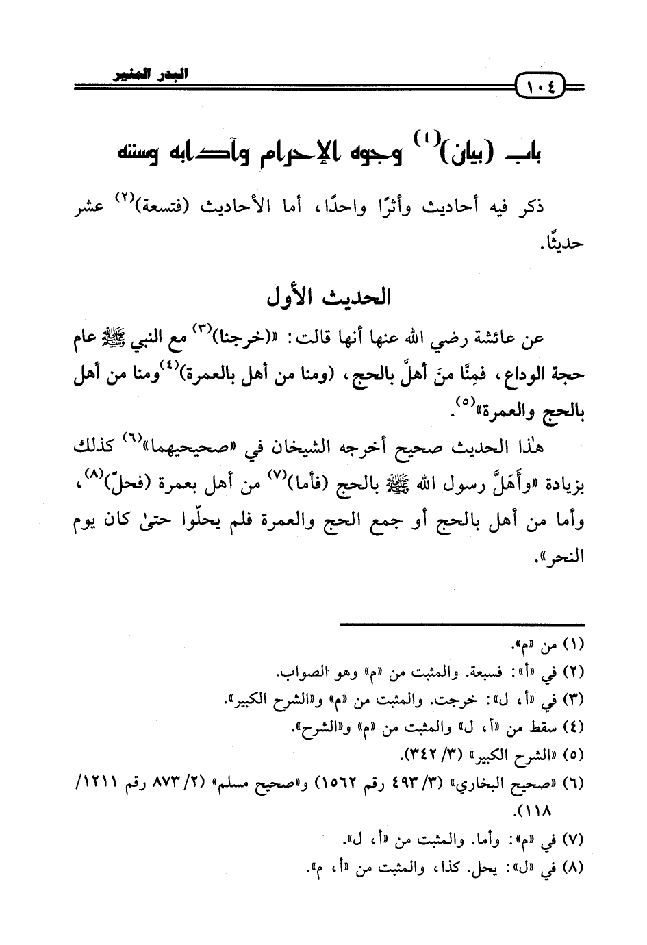 بَاب (بَيَان) وُجُوه الْإِحْرَام وآدابه وسننه