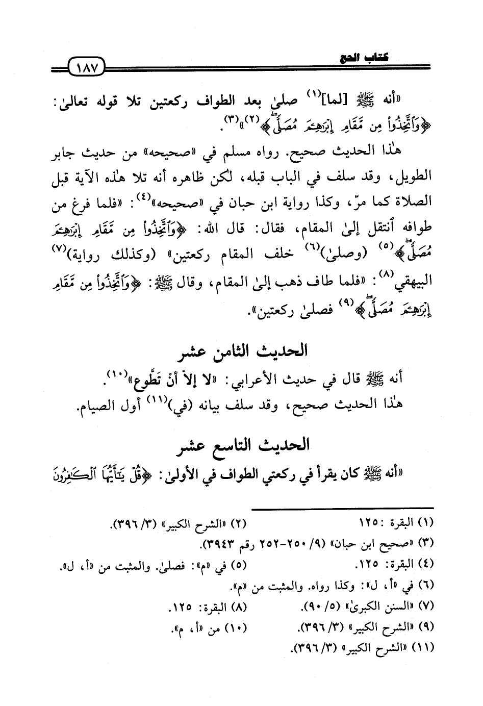 هَذَا الحَدِيث صَحِيح. رَوَاهُ مُسلم فِي «صَحِيحه» من حَدِيث جَابر الطَّوِيل، وَقد سلف فِي الْبَاب قبله، لَكِن ظَاهره أَنه تَلا هَذِه الْآيَة قبل الصَّلَاة كَمَا مرّ، وَكَذَا رِوَايَة ابْن حبَان فِي «صَحِيحه» : «فَلَمَّا فرغ من طَوَافه انْتقل إِلَى الْمقَام، فَقَالَ: قَالَ الله: (وَاتَّخذُوا من مقَام إِبْرَاهِيم مُصَلَّى) (وَصَلى) خلف الْمقَام رَكْعَتَيْنِ» (وَكَذَلِكَ رِوَايَة) الْبَيْهَقِيّ: «فَلَمَّا طَاف ذهب إِلَى الْمقَام، وَقَالَ (: (وَاتَّخذُوا من مقَام إِبْرَاهِيم مُصَلَّى) فَصَلى رَكْعَتَيْنِ» .